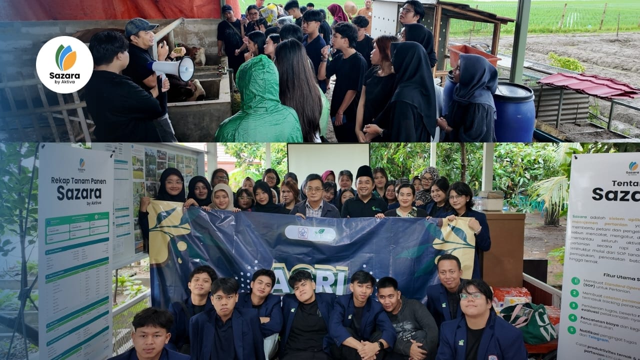 Selanjutnya, peserta mendapatkan perkenalan singkat mengenai Sazara by Aktiva sebagai aplikasi manajemen pertanian. Sazara diperkenalkan sebagai solusi digital yang berfungsi untuk membantu pencatatan, pengelolaan, serta pemantauan aktivitas pertanian secara sistematis dan efisien. Pengenalan aplikasi ini menunjukkan pentingnya penerapan teknologi informasi dalam mendukung efektivitas pengelolaan usaha pertanian.